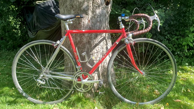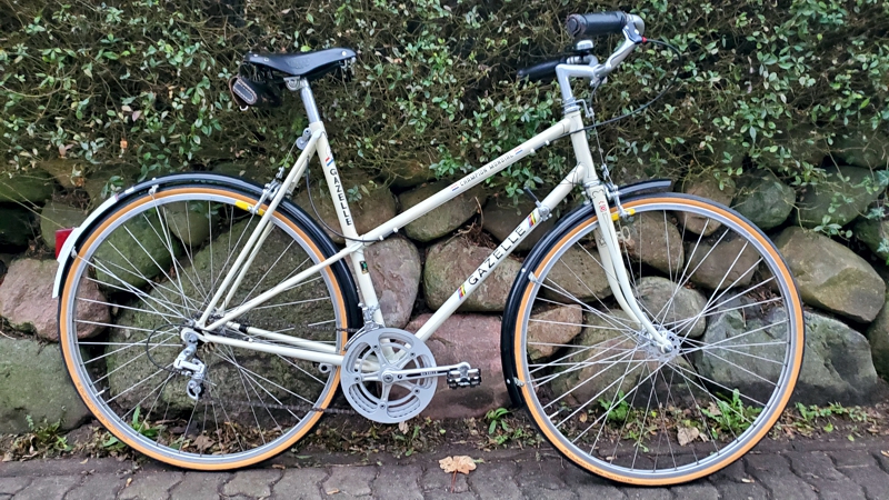 Ein klassisches Rennrad aus meinem Geburtsjahr (1974) ist mein Traum, so können wir zusammen altern, aber das Rennrad kann ich in Top-Form halten. Bisher bin ich noch nicht fündig geworden, aber diese Gazelle Tour de l'Avenir kommt mit ihrem Baujahr schon nahe dran: 1977. Das Rad hat noch nicht viele Kilometer gesehen. Nachdem ein Kunde 1978 seine Trinkschulden damit beglichen hatte, hing es im Treppenhaus einer Kneipe, bis ich der glückliche Käufer sein durfte. So mußte ich es hauptsächlich vom Nikotin und Staub reinigen, aber natürlich bekam das Rad den kompletten Service. Wenn ich nicht mit meiner Frau auf dem Tandem fahre, nehme ich dieses Rad für Klassiker-Touren.