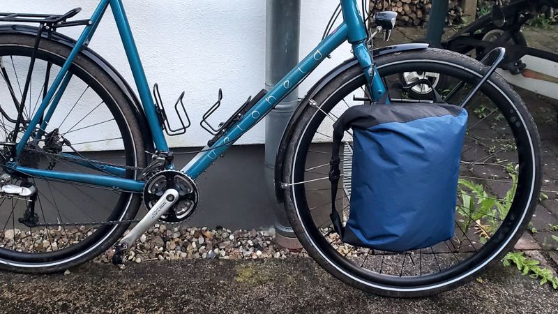 Die Taschen sind aus X-Pac genäht, einem Hightechgewebe, und absolut wasserdicht. Das Eintauchen der Taschen in einer tiefen Furche und diverse Gewitterfahrten auf meiner Frankreich-Radtour 2024 waren der Härtetest. Und der Aero-Effekt? Ein Test steht noch aus, aber psychologisch wirken sie bombe!