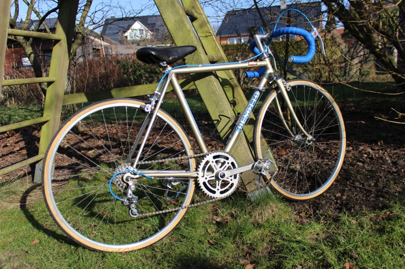 Wenn Papa klassische Rennräder fährt, wollen das natürlich auch die Kinder. Also war es ein Glücksfall, dass ich diesen schicken Miniatur-Italiener fand. Alles ist wie beim großen Bruder, nur halt auf 24" Rädern. Die haben Schlauchreifen, mein erster Kontakt mit diesen altertümlichen Pneus und ich hoffe, dass sie nie einen Platten bekommen, denn Ersatz ist schwierig zu beschaffen.