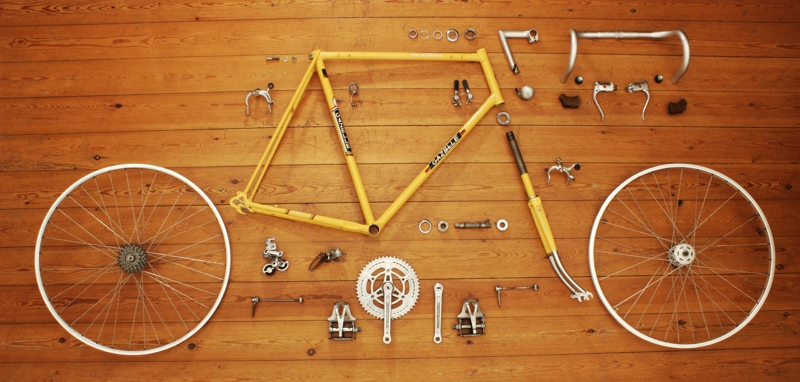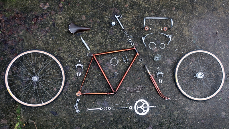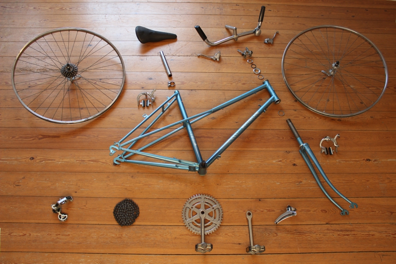 Dieses Mixte-Rad mit einem sehr eigenwilligen Rahmen habe ich für unsere Freundin Claudia in den Niederlanden gekauft und aufgearbeitet. Es war das volle Programm mit dem Zerlegen aller Komponenten in ihre Einzelteile. Dass man einen französischen Klassiker vor sich hat, erkennt man immer an den exotischen Schlüsselweiten. 9er, 11er und 14er Schlüssel sind die Regel.