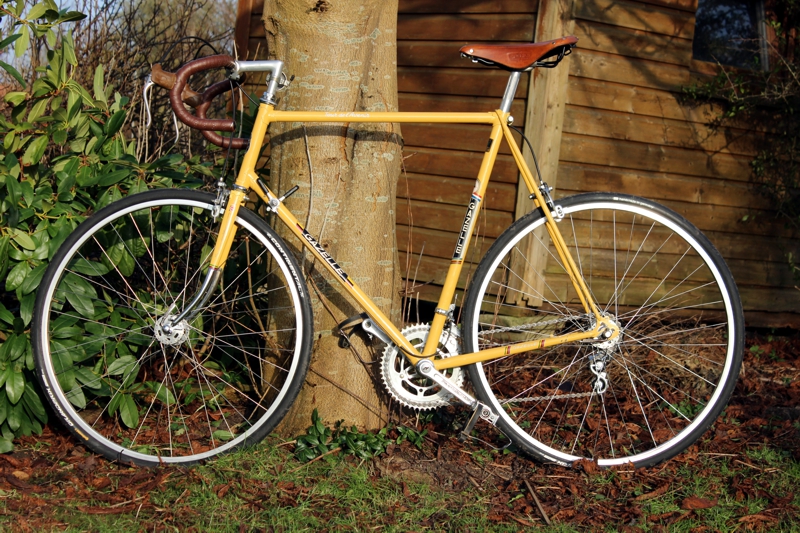 Das Modell Champion Mondial war in den 70ern bis 90ern das absolute Top-Modell von Gazelle. Nachdem mein Stall schon das Rennrad und das Tandem zieren, war es ein großes Glück, als ich über diese Cyclocross-Version des Modells stolperte (Bj. 1987), denn dieses Modell ist selten. Dabei paßt es so gut in die heutige Zeit, wo alle Gravelbikes brauchen. Das Rad fährt sich sehr leicht und agil und hat sich dank seiner simplen Technik schon bei absolut katastrophalen Witterungsbedingungen in der Heide bewährt. Manchmal habe ich im Gelände Angst um den filigranen Rahmen, aber ich hoffe, sie wird mir noch lange erhalten bleiben.